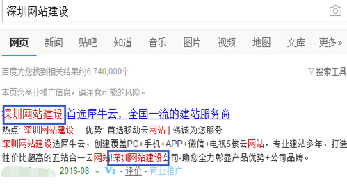 再例如,IP定位為深圳的用戶搜索“網站建設”,創意標題和描述中含有地名詞“深圳”,故創意中“深圳網站建設”會被飄紅。